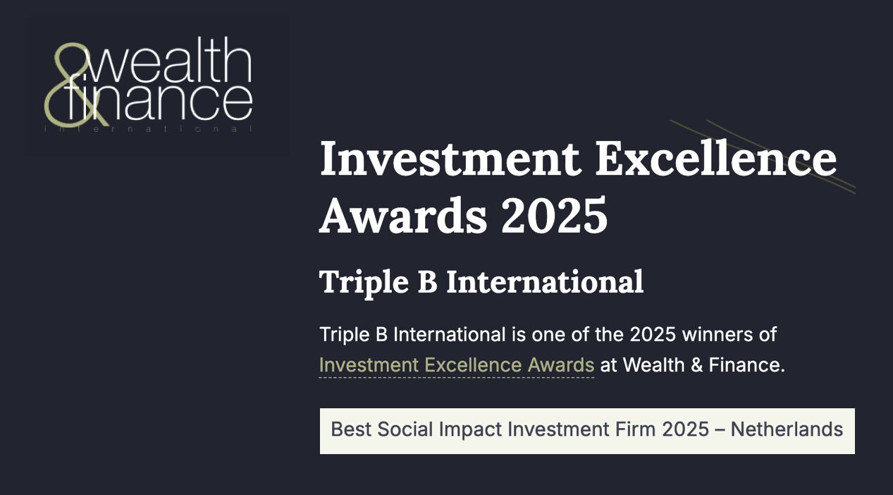🏅 We’re happy to share that we have been named “Best Social Impact Investment Firm 2025 – Netherlands” at the Wealth & Finance International Investment Excellence Awards.